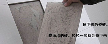 • 貼磚時,水泥砂漿與瓷磚背面孔隙的機械咬合易失效。